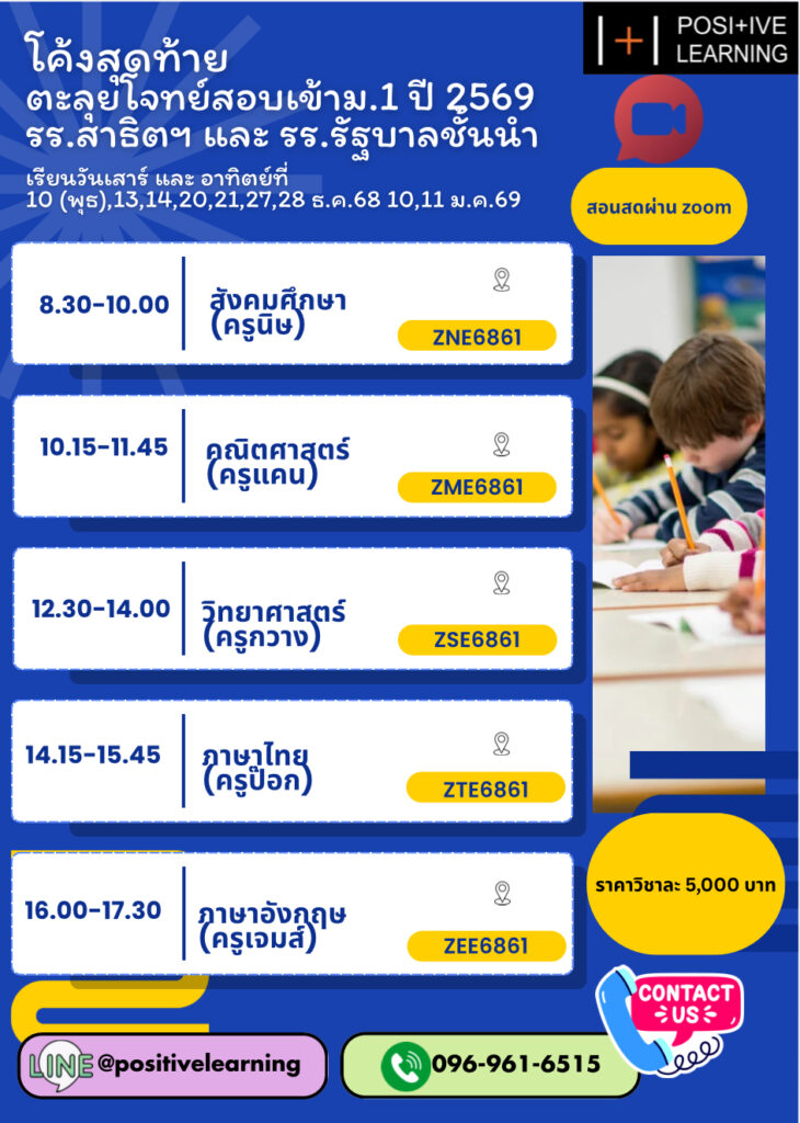 Positive Learning โรงเรียนกวดวิชาพัฒนาการเรียนรู้ ติวสอบเข้า ม.1 – Positive-learning